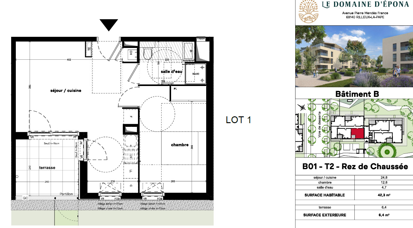 Résidence Epona, proche piscine quartier Loup Pendu, agréable T2 en RDC avec terrasse sur espaces verts , se composant d’un séjour et cuisine meublées équipée de plaques de cuisson et d’une hotte, d’une chambre, une salle d’eau, avec WC, stationnement privatif en sous sol, chauffage individuel gaz
