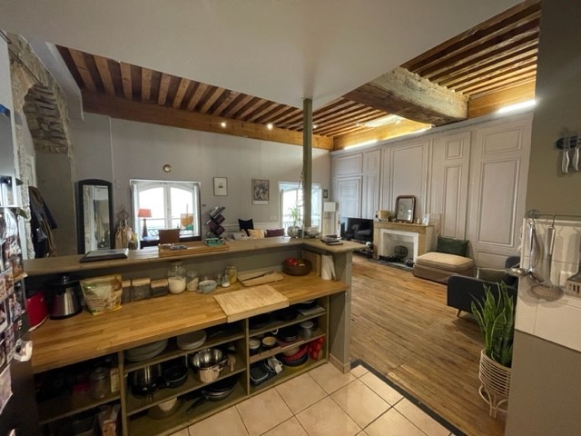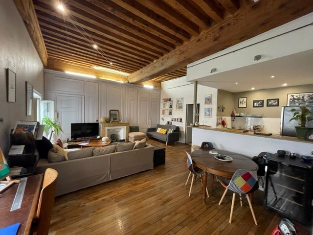 Quai St Vincent, proche passerelle homme de la Roche, bel appartement au calme sur cour intérieure, esprit loft, vaste séjour en parquet de plus de 30m2, cuisine U.S.A. non équipée mais spacieuse et fonctionnelle, chambre en parquet, plus une pièce de plus de 8m2 , borgne, pouvant s’équiper en dressing ou bureau ,une salle de bains et toilette séparé, chauffage inclus dans les charges