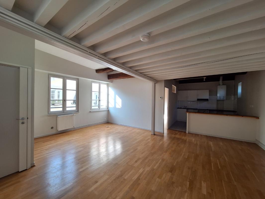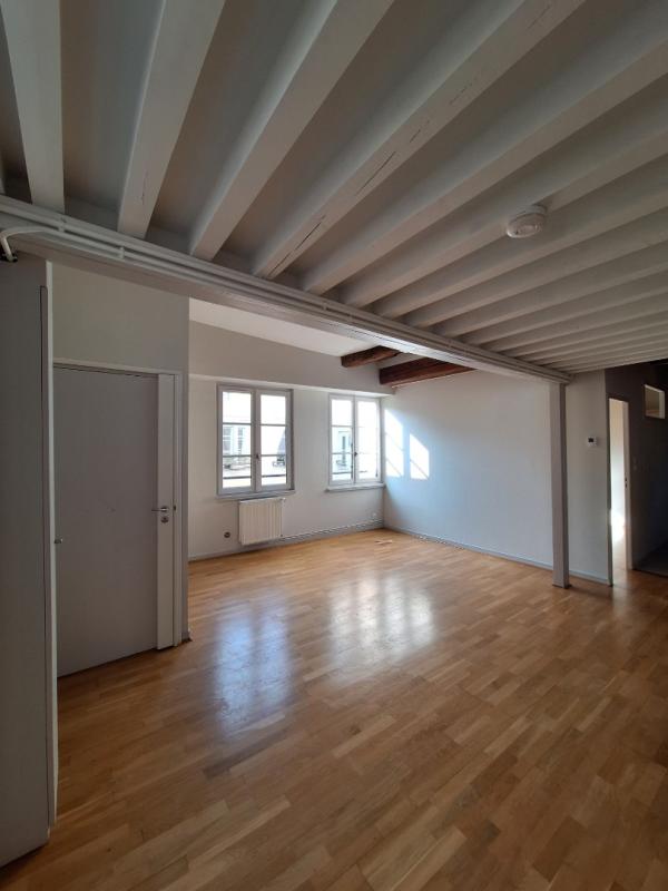 Rue du Griffon, bas des pentes proche hôtel de ville, dans bel immeuble ancien réhabilité avec ascenseur, agréable type 2 traversant en dernier étage, chaleureux et agréable, vaste séjour et cuisine ouverte non équipée, une grande chambre en parquet mansardée avec rangements aménagés dans la sous pentes, une salle d’eau , appartement clair, calme et chaleureux, chauffage, eau chaude et froide inclus dans les charges